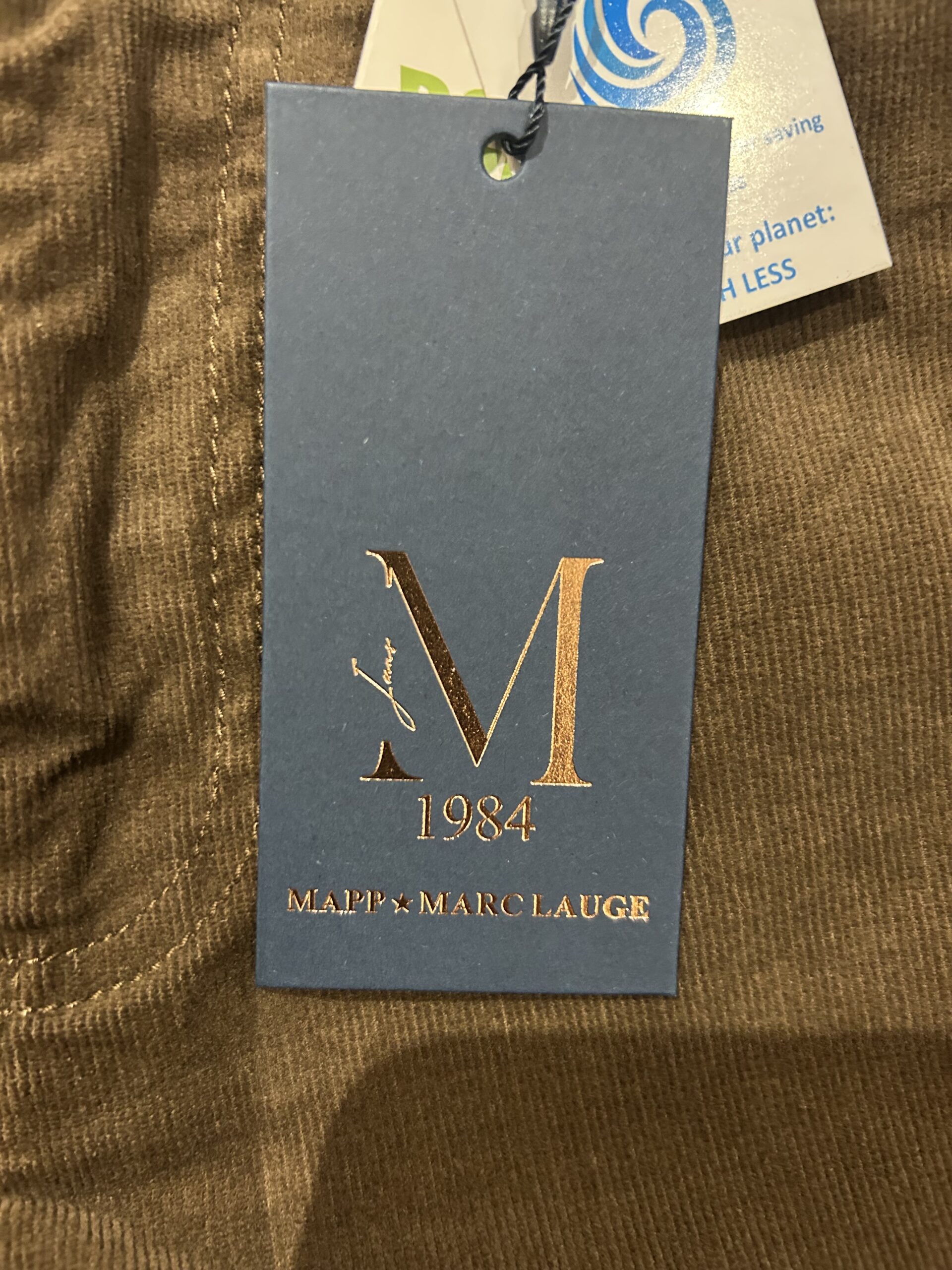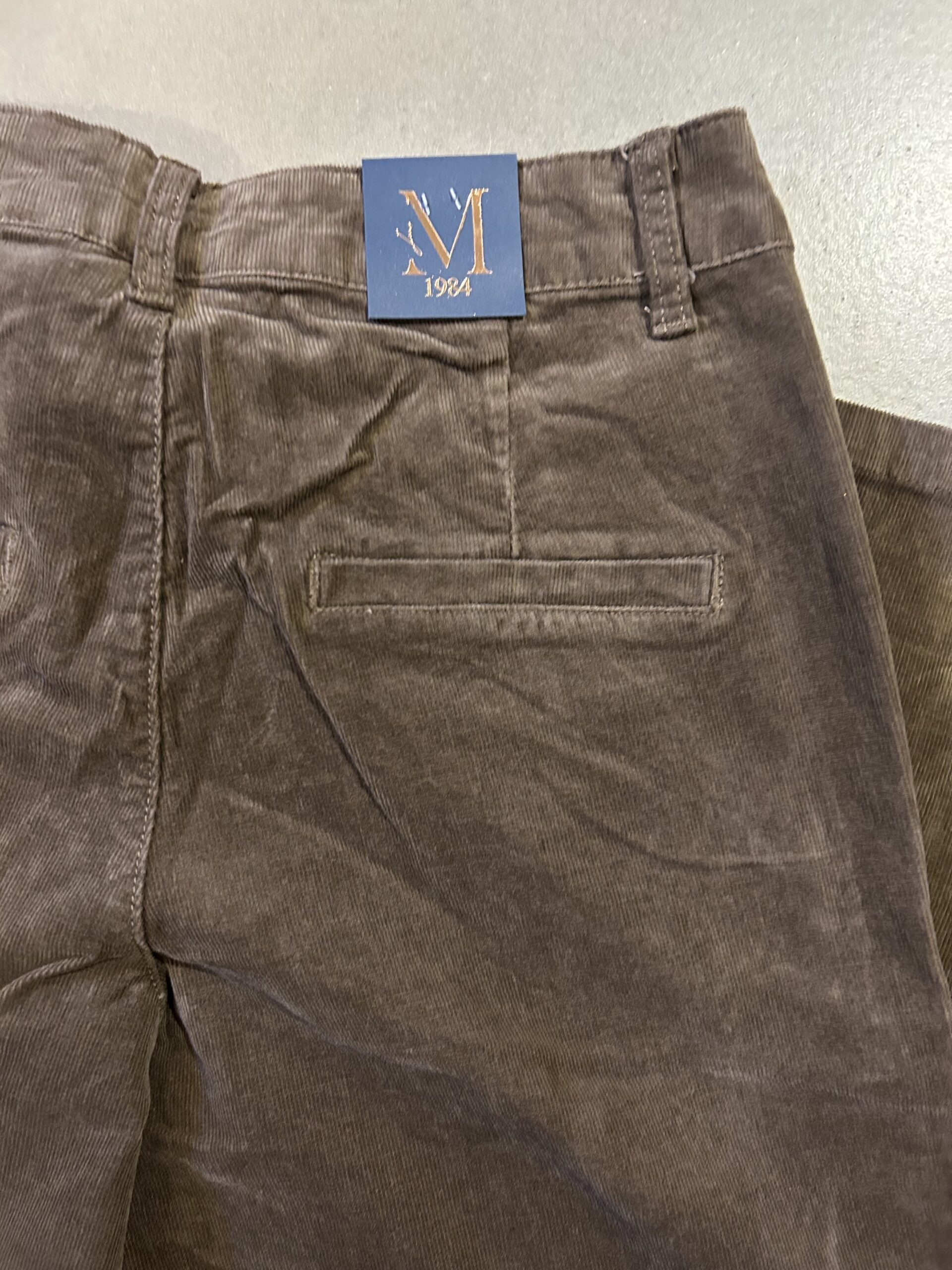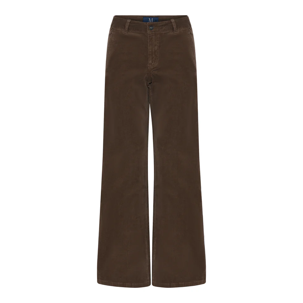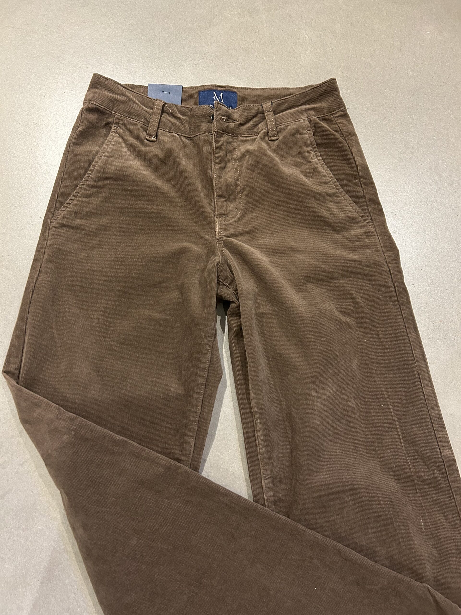 Jeans fra Marc Lauge i en mørkebrun fløjl – m/ brede ben – skrå lomme foran – skjult lomme bagpå – blød elastisk kvalitet