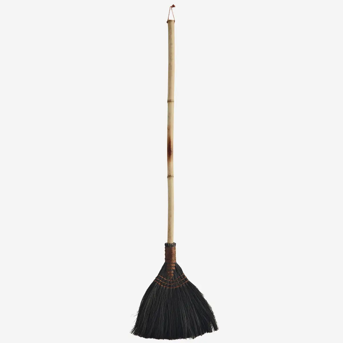 Feje kost dark grey m/bambus skaft og strå af søgræs som er bundet med jute….
