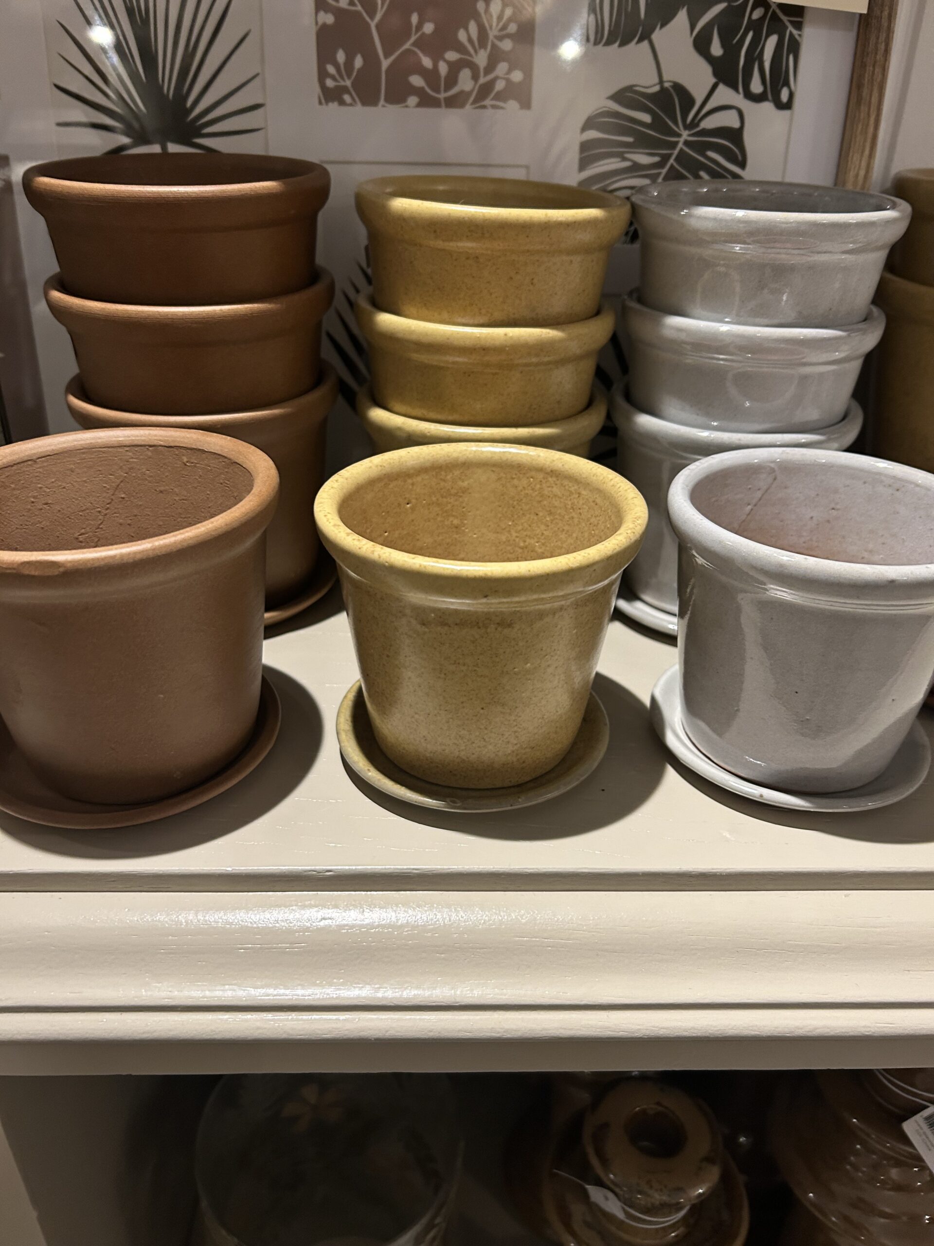 Glaserede krukker fra B-GREEN til inde eller ude….findes i flere str og farver,,, de kan være brændt forskelligt så 2 er ikke helt ens