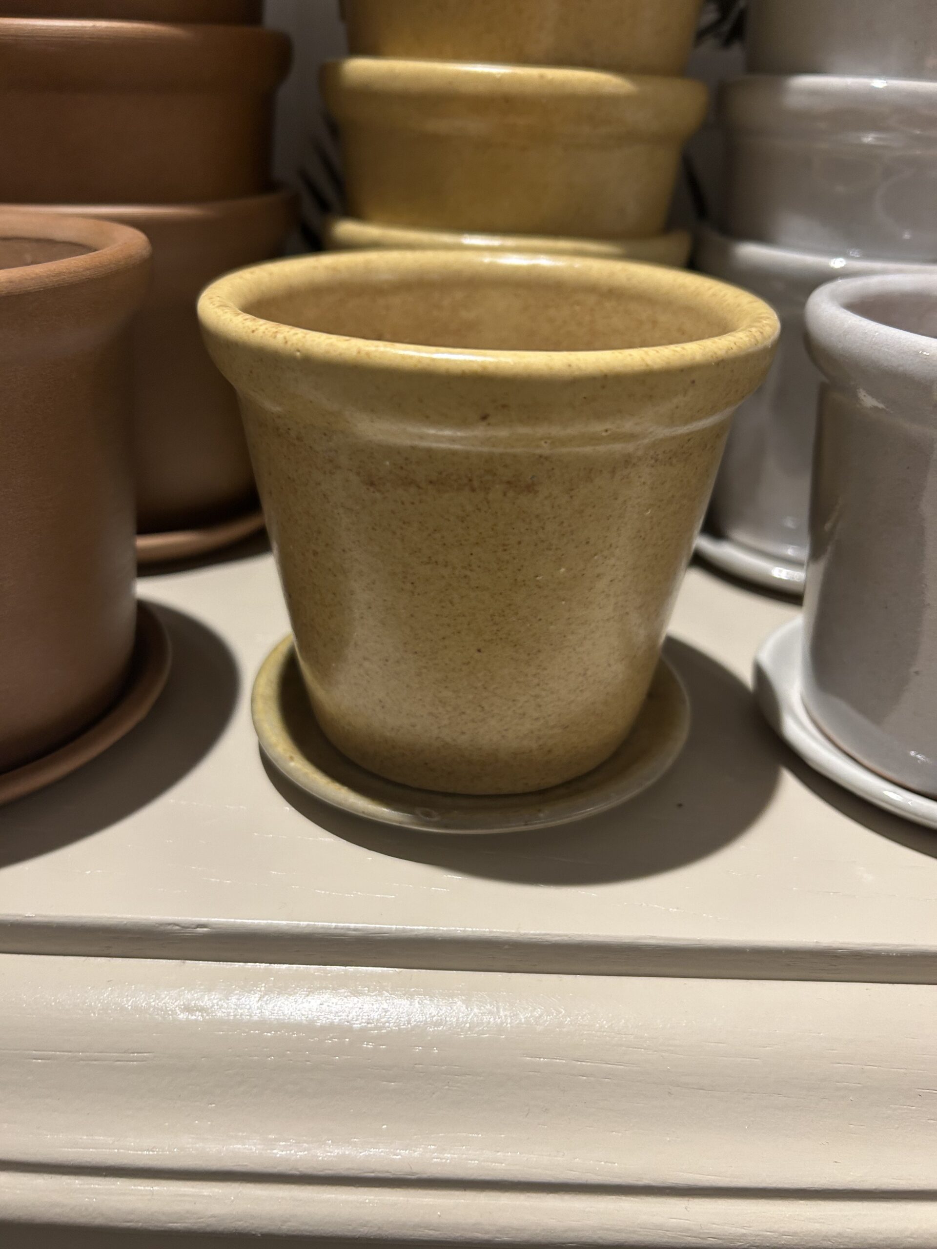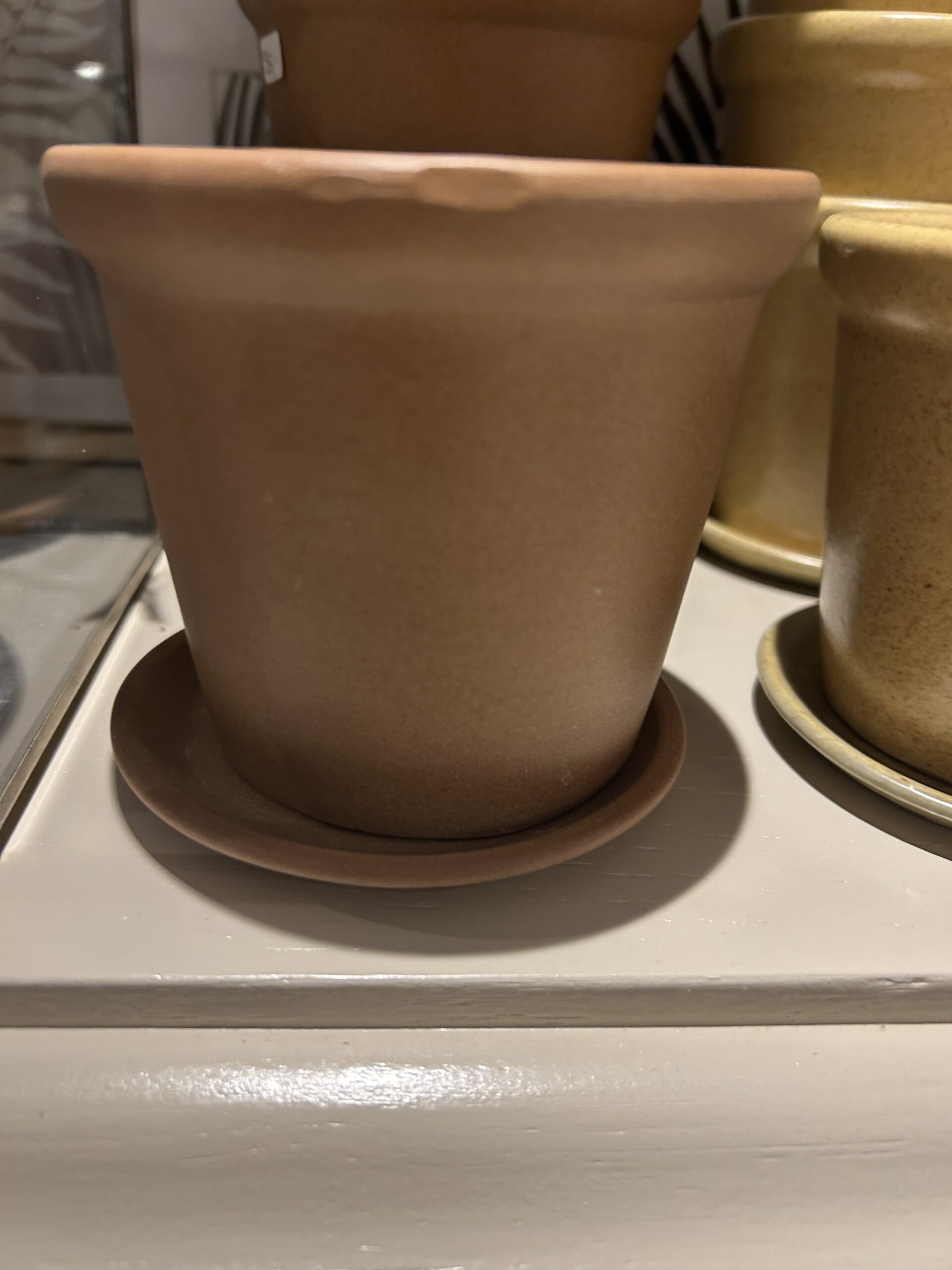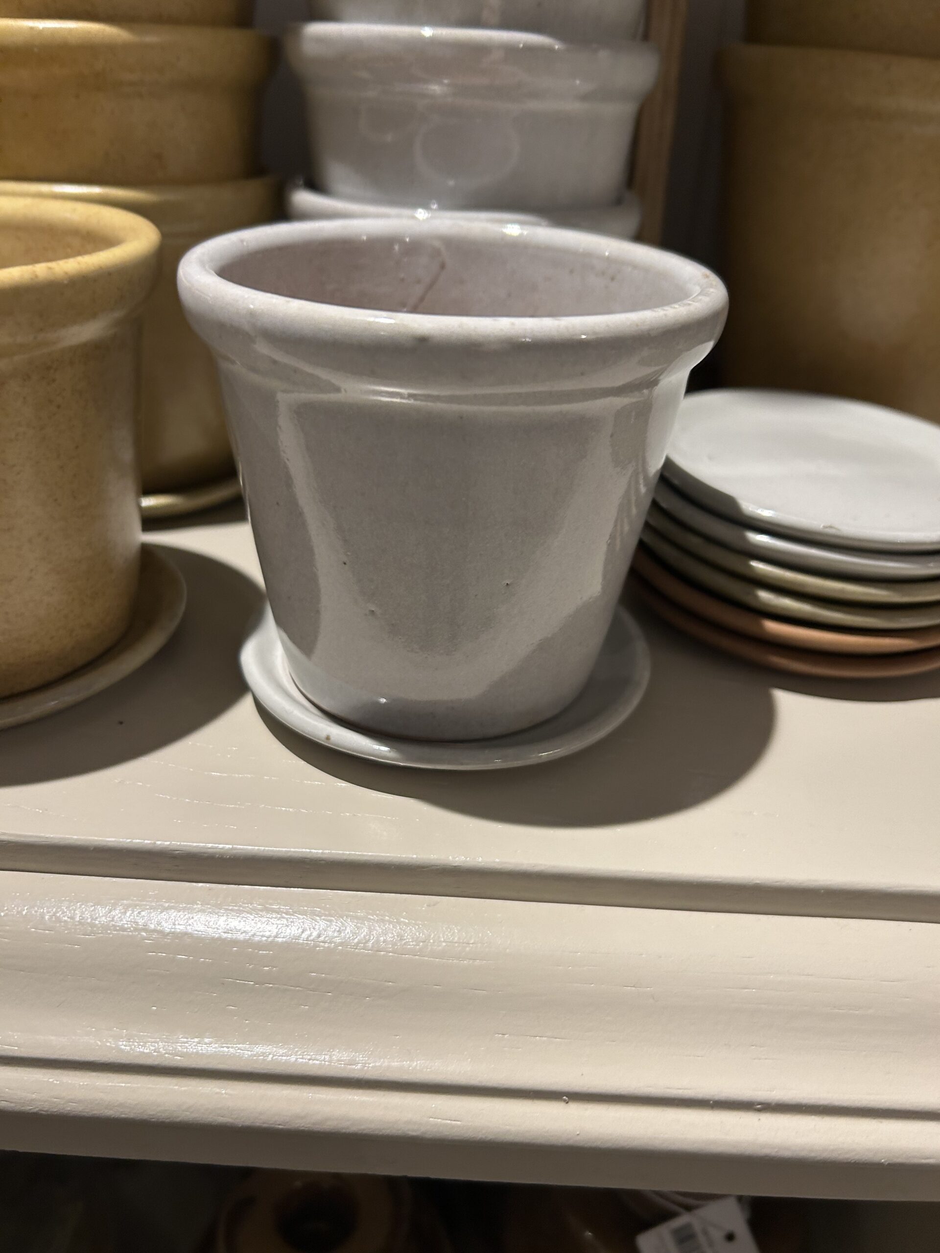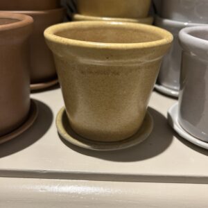 Lille lerkrukke m/hul i 3 farver m/underskål….