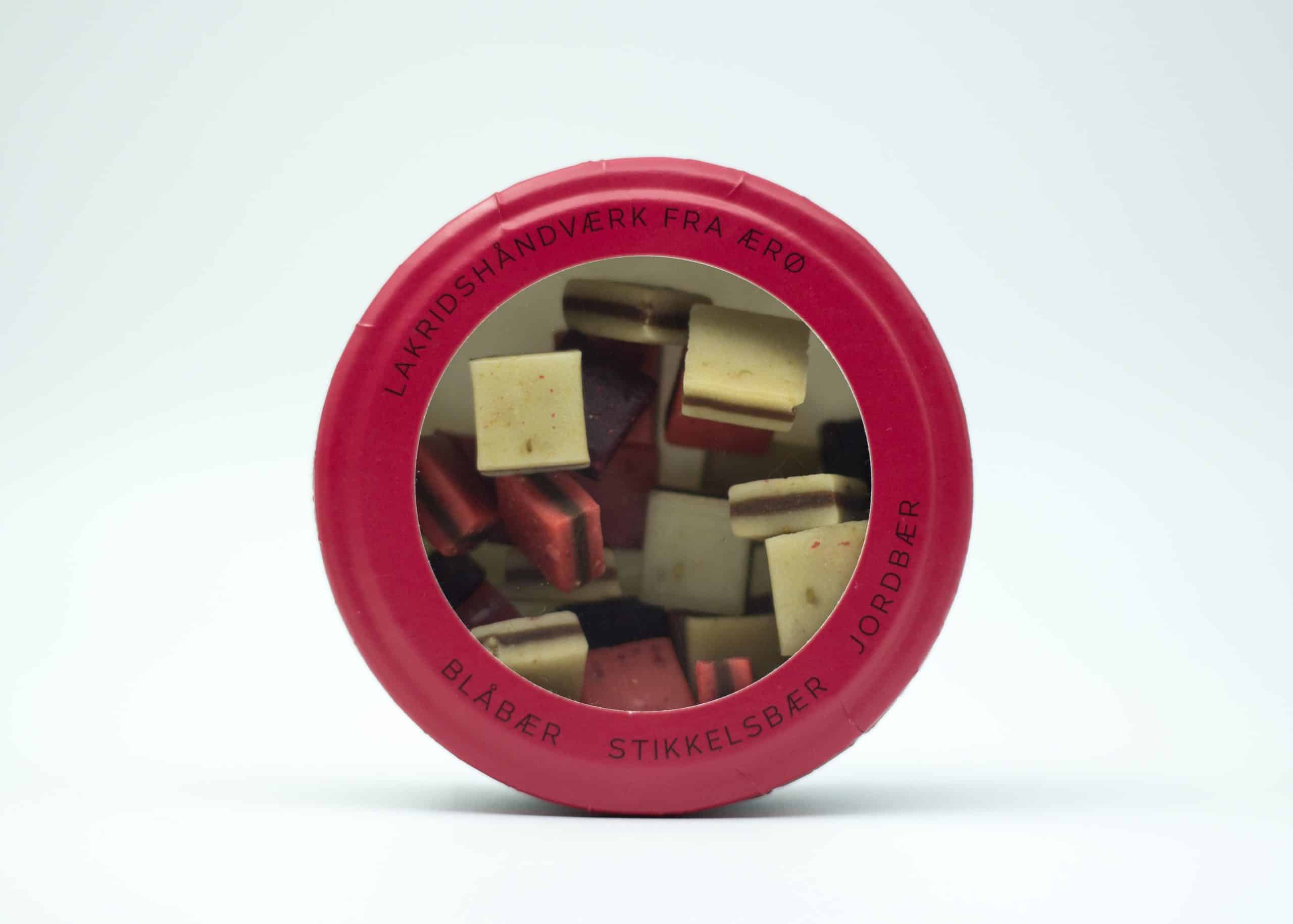 Lakridskonfekt med Blåbær, Stikkelsbær og Jordbær.
