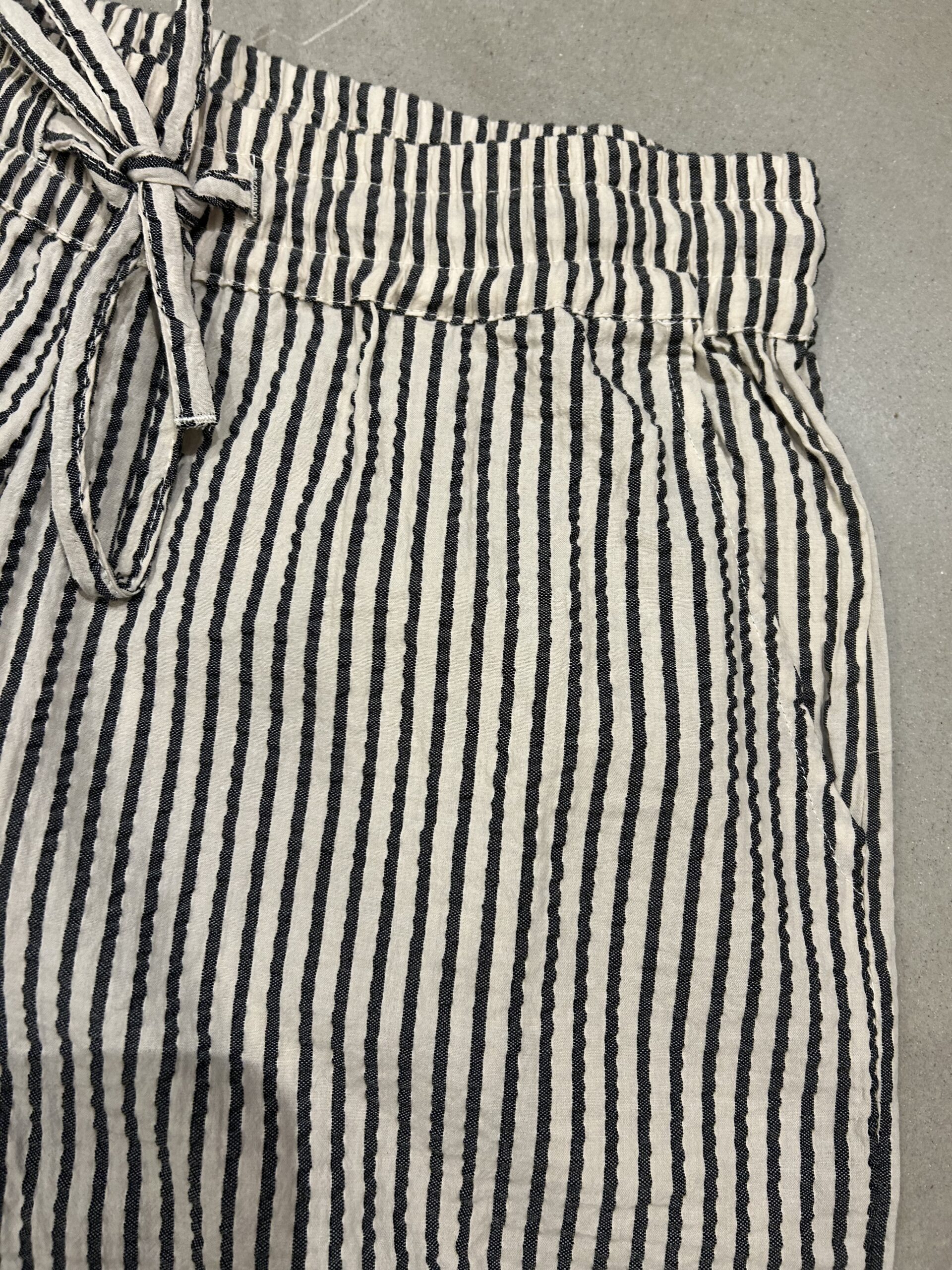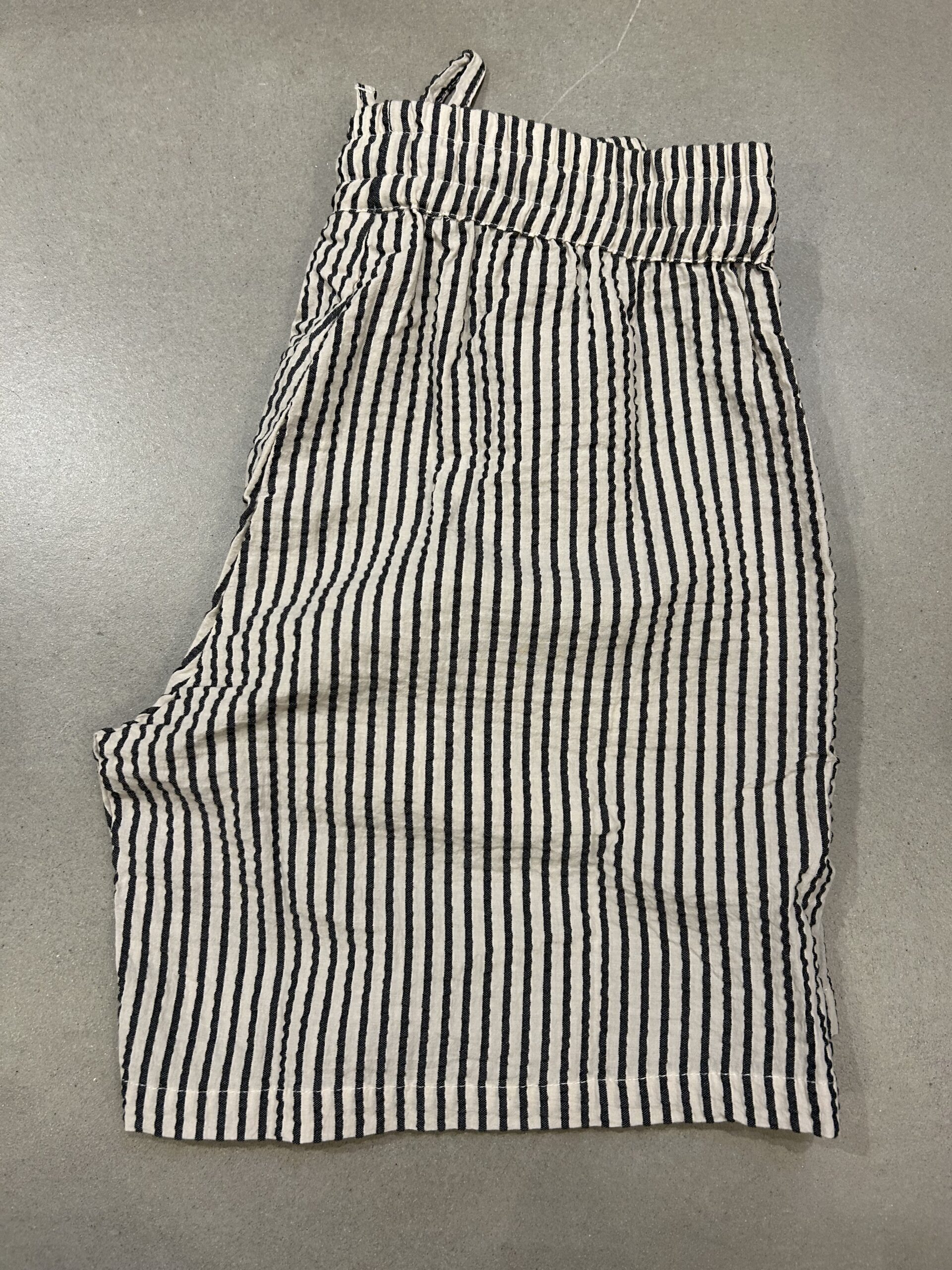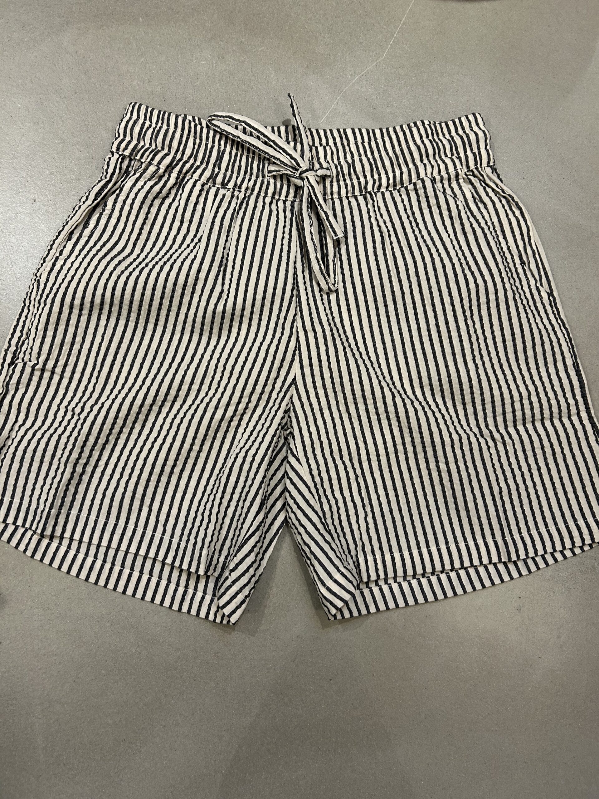 Shorts m/striber i blød bomuld… skrå lommer og elastik i taljen samt bindebånd….