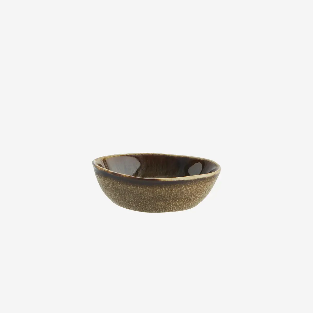 Lille skål i stentøj… rustik brun m/ mørk glasur indeni…..