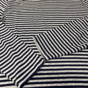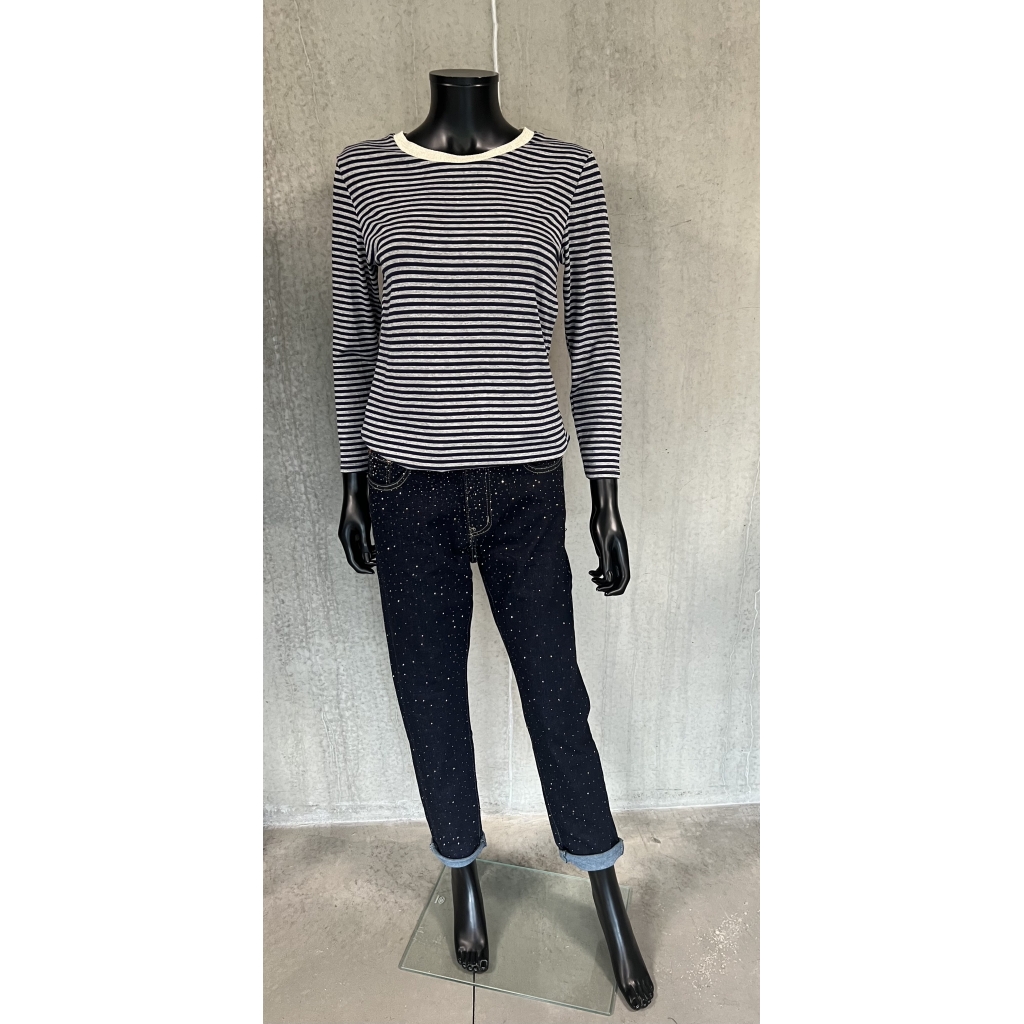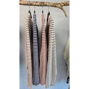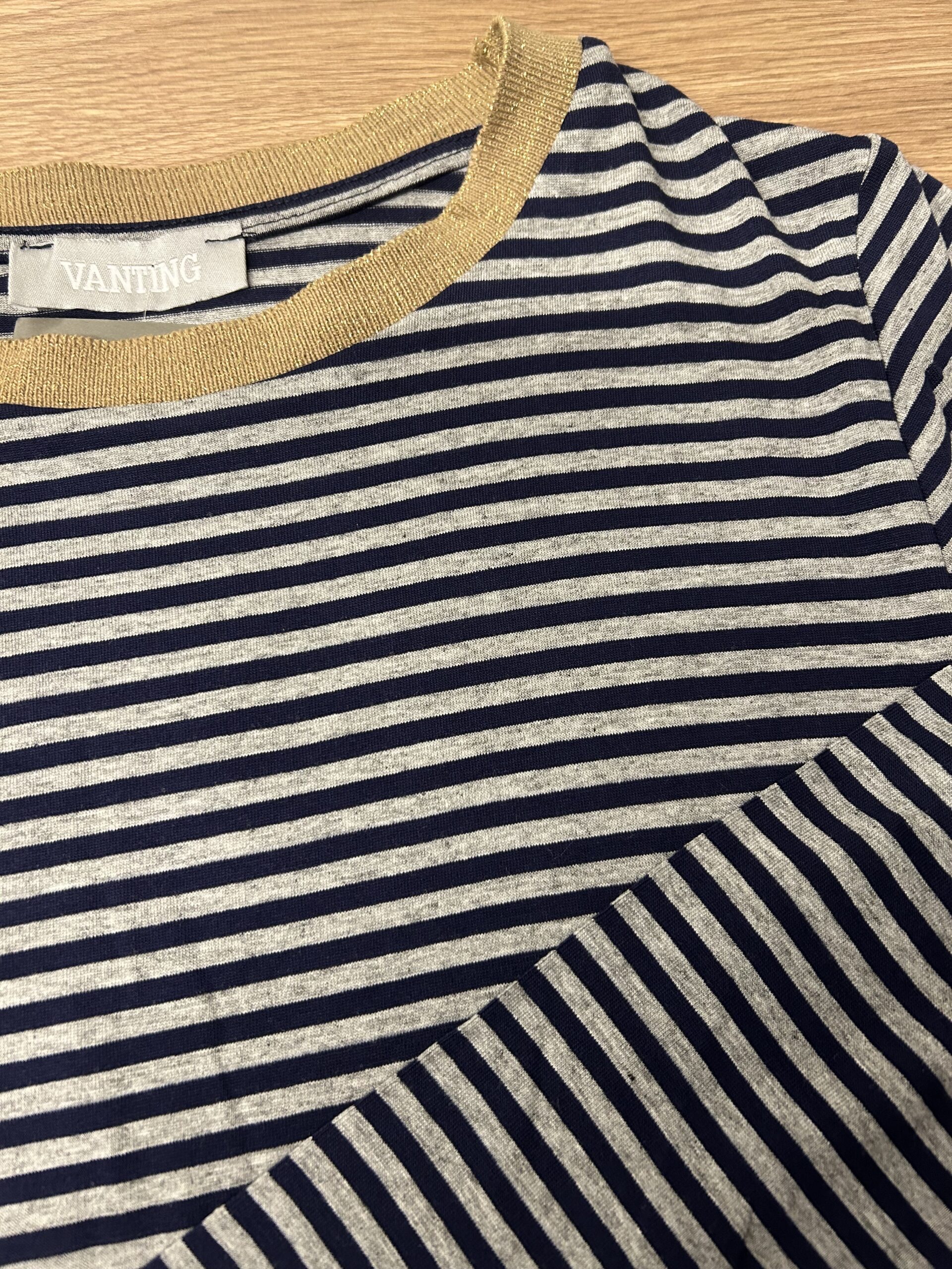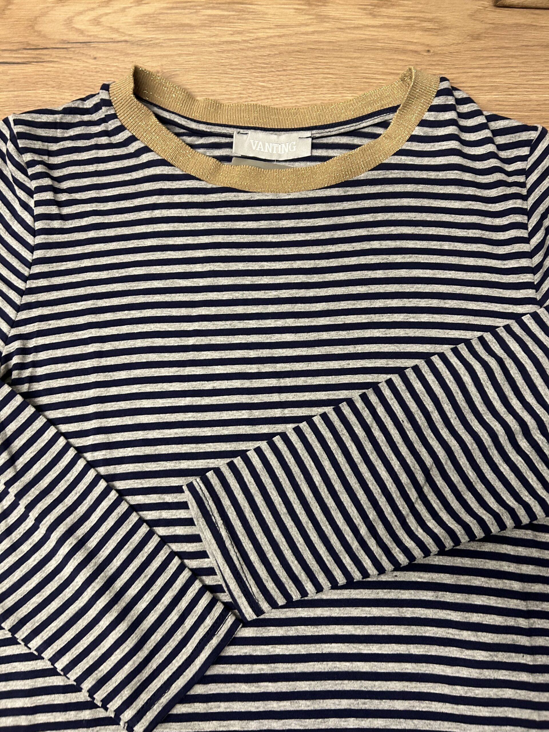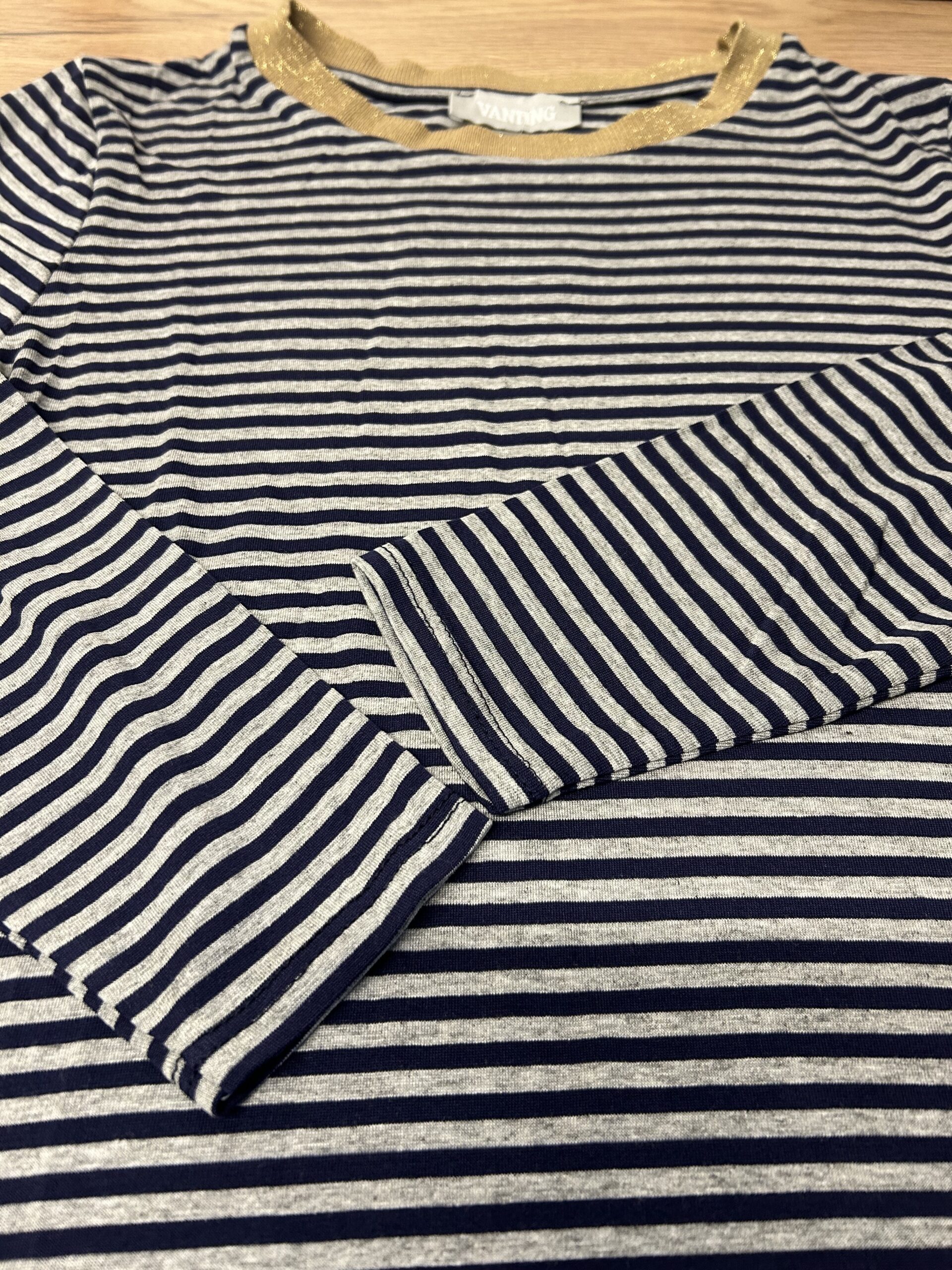 T-shirt med striber marineblå / grå….sød hals kant m/lidt guld glimmer