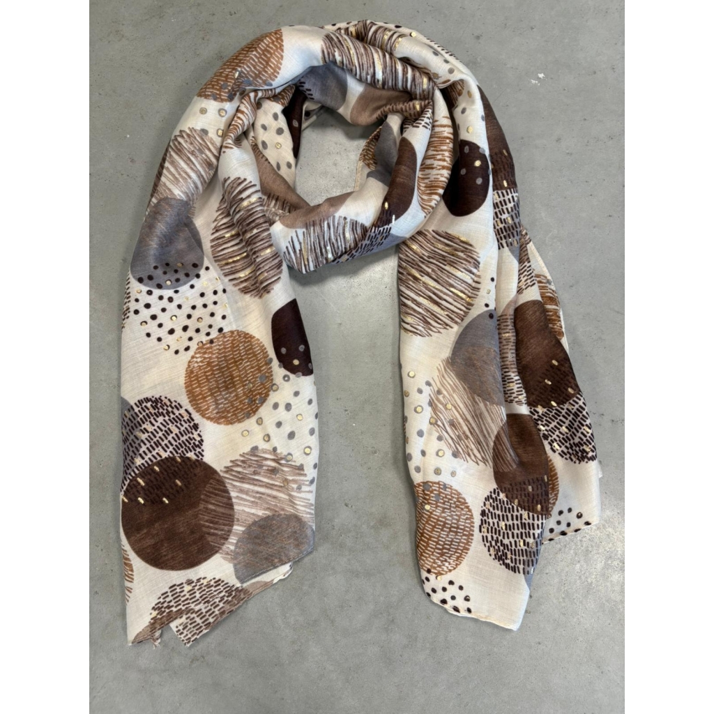 Blødt langt tørklæde i sand & jord farver m/prikker….