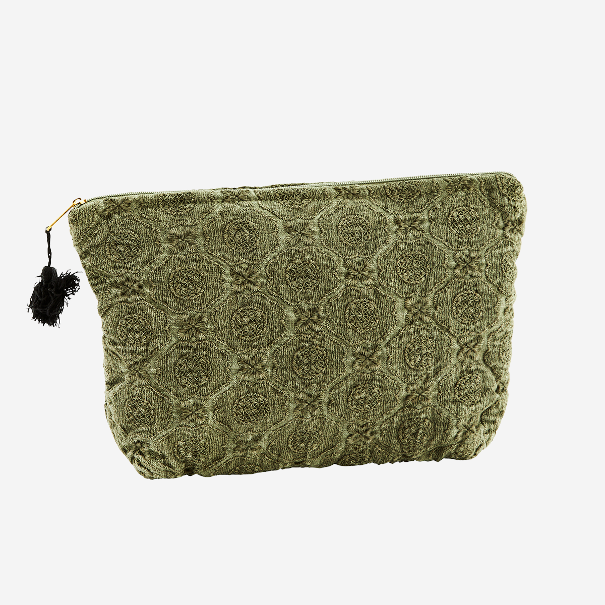 Toilet bag lille grøn broderet blomster MADAM STOLTZ