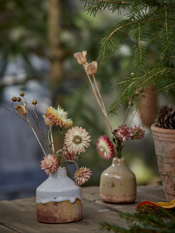Små rustikke ler vaser i 3 farver til en enkelt blomst eller to