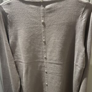 Finstrikket bluse – army grøn m/ rund hals……påsyede knapper på ryggen